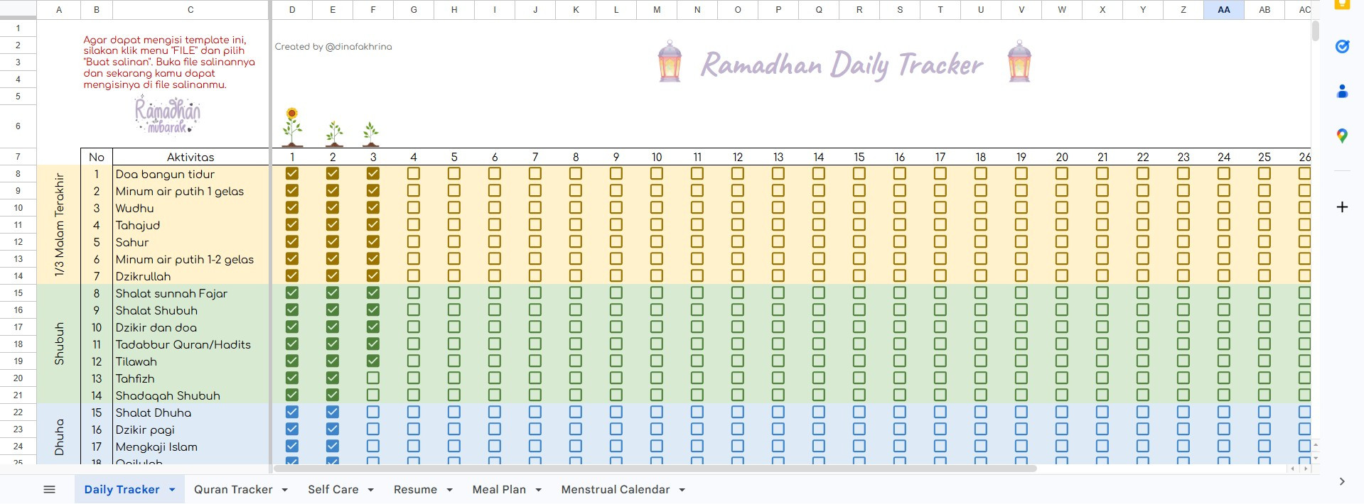 Akses Copy / download spreadsheet